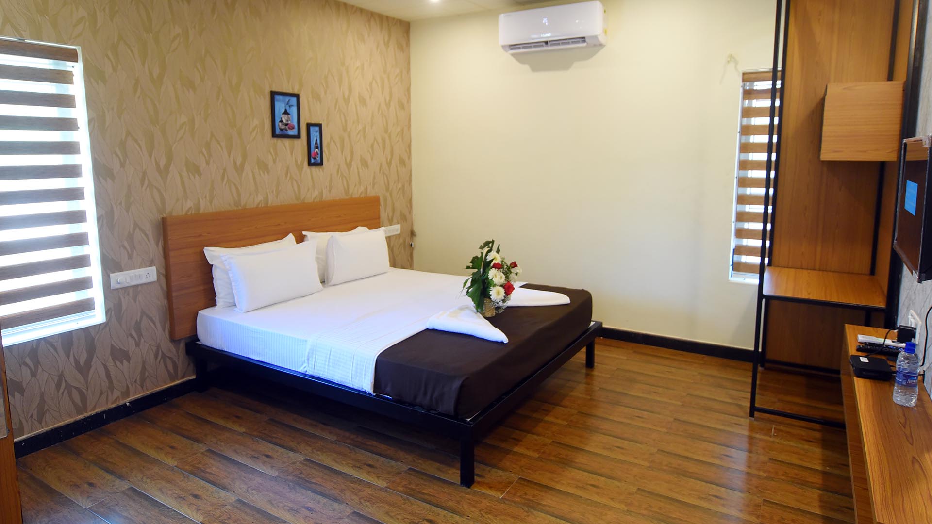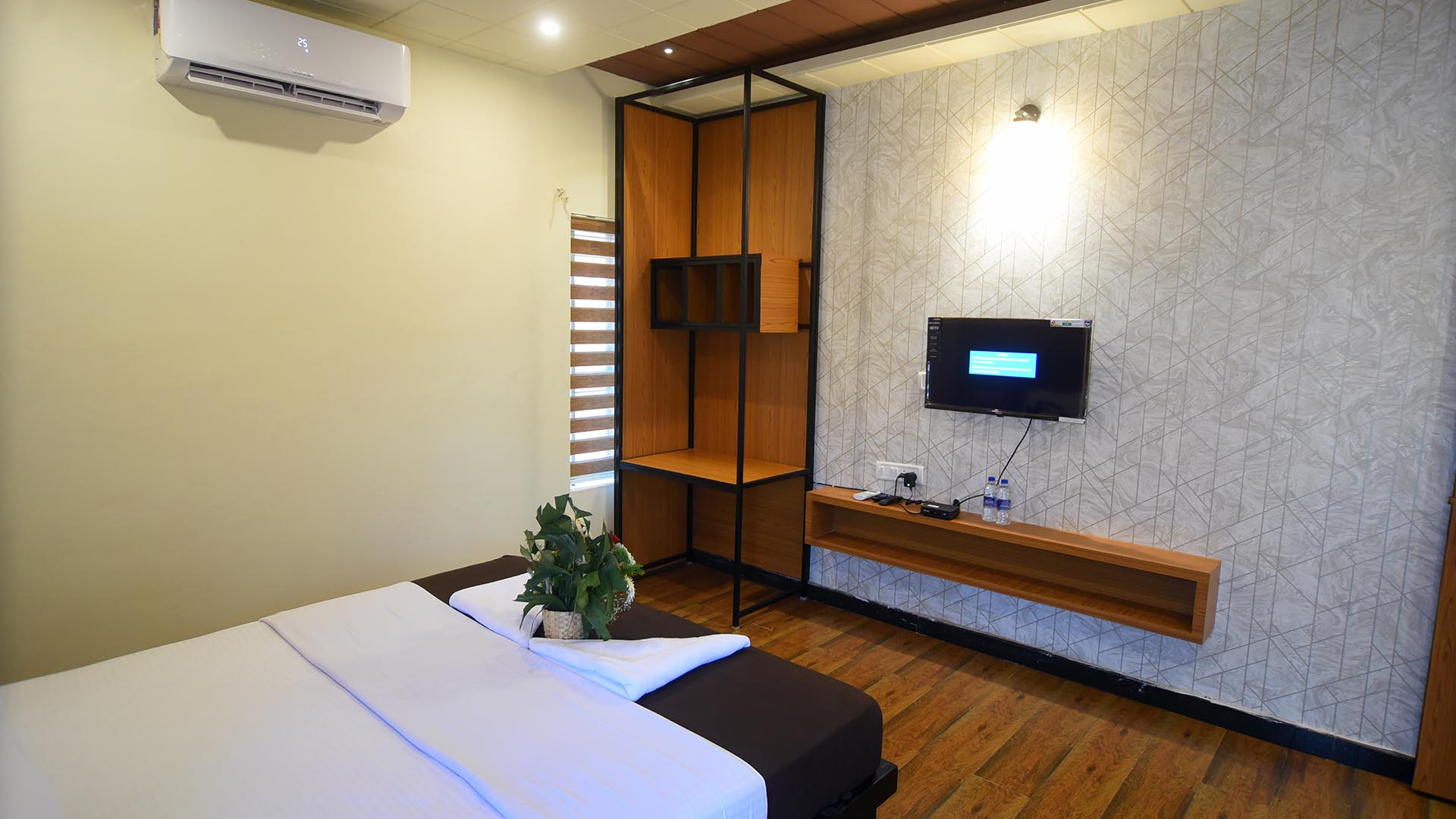 Premier rooms have all modern amenities like Double bed, A/C, Wi-Fi, TV, electric Kettle, Room Service, Laundry Service, Bath Room along with other basic amenities.